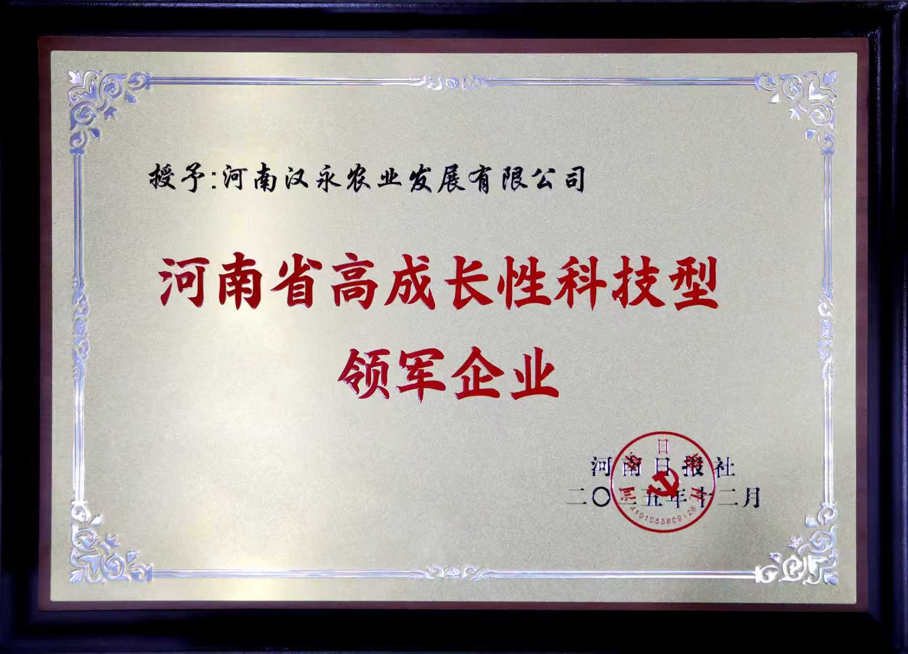 河南汉永农业获评“河南省高成长性科技型领军企业”