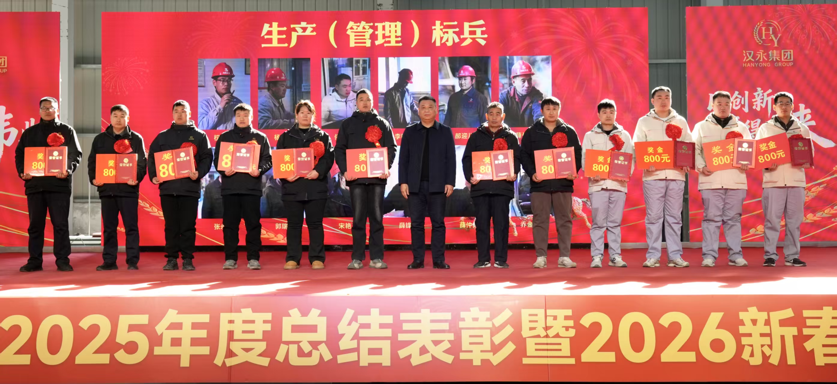 在副总经理张志娟宣读表彰决定后,集团领导依次为荣获“优秀员工”“生产(管理)标兵”“先进班组”“先进部室”等荣誉的集体与个人颁奖。代表们在掌声中接过证书、奖牌与奖金,展现出汉永人昂扬奋进的姿态。